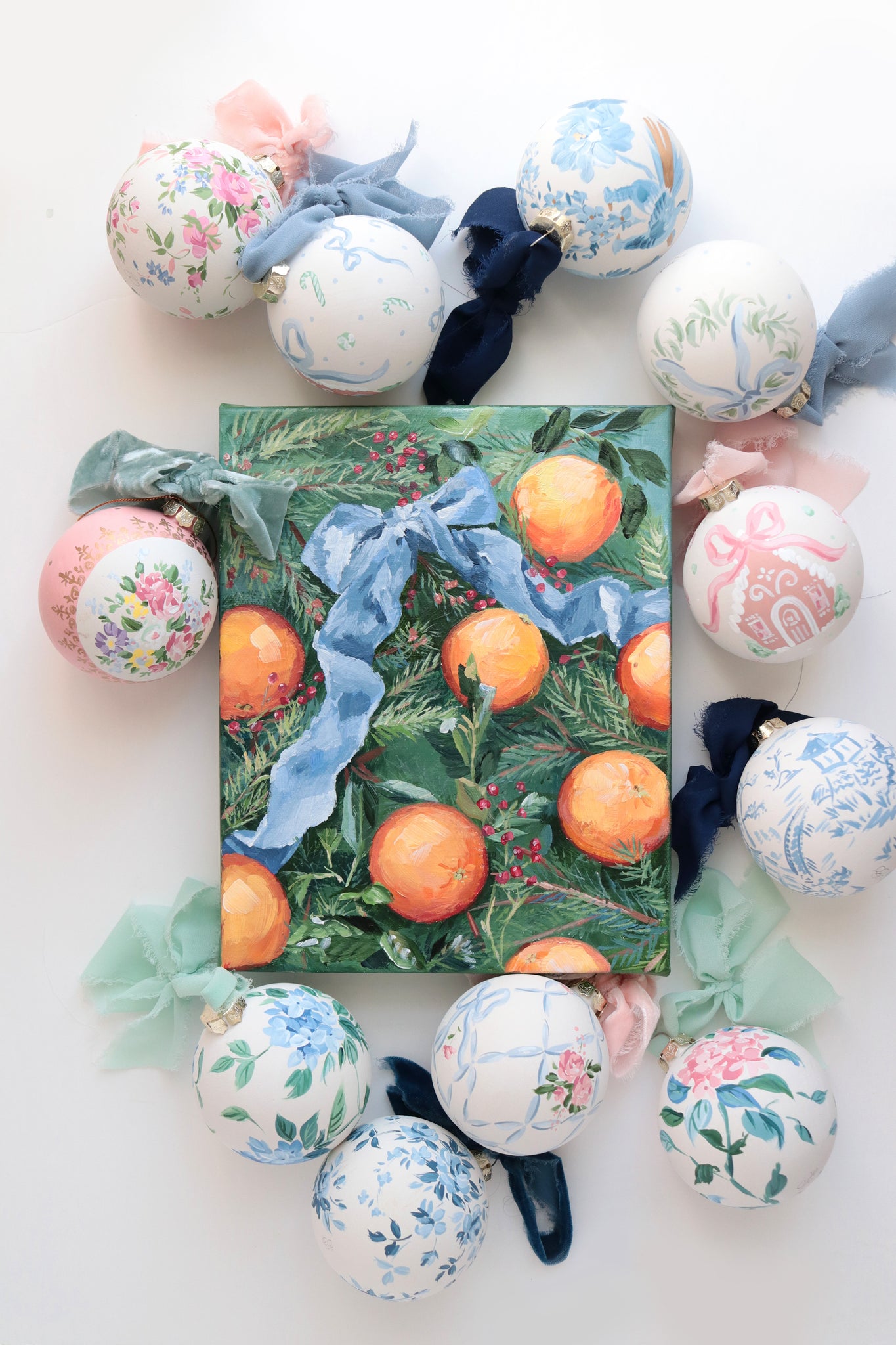 Oranges and winter greens (No. 498) - 8 x 10 acrylic painting on canvas