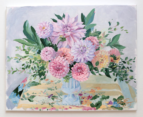 No. 492 Original floral painting lilac and pink dahlia arrangement - 16 x 20