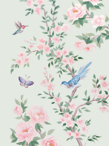 April (detail), a pink chinoiserie fine art print