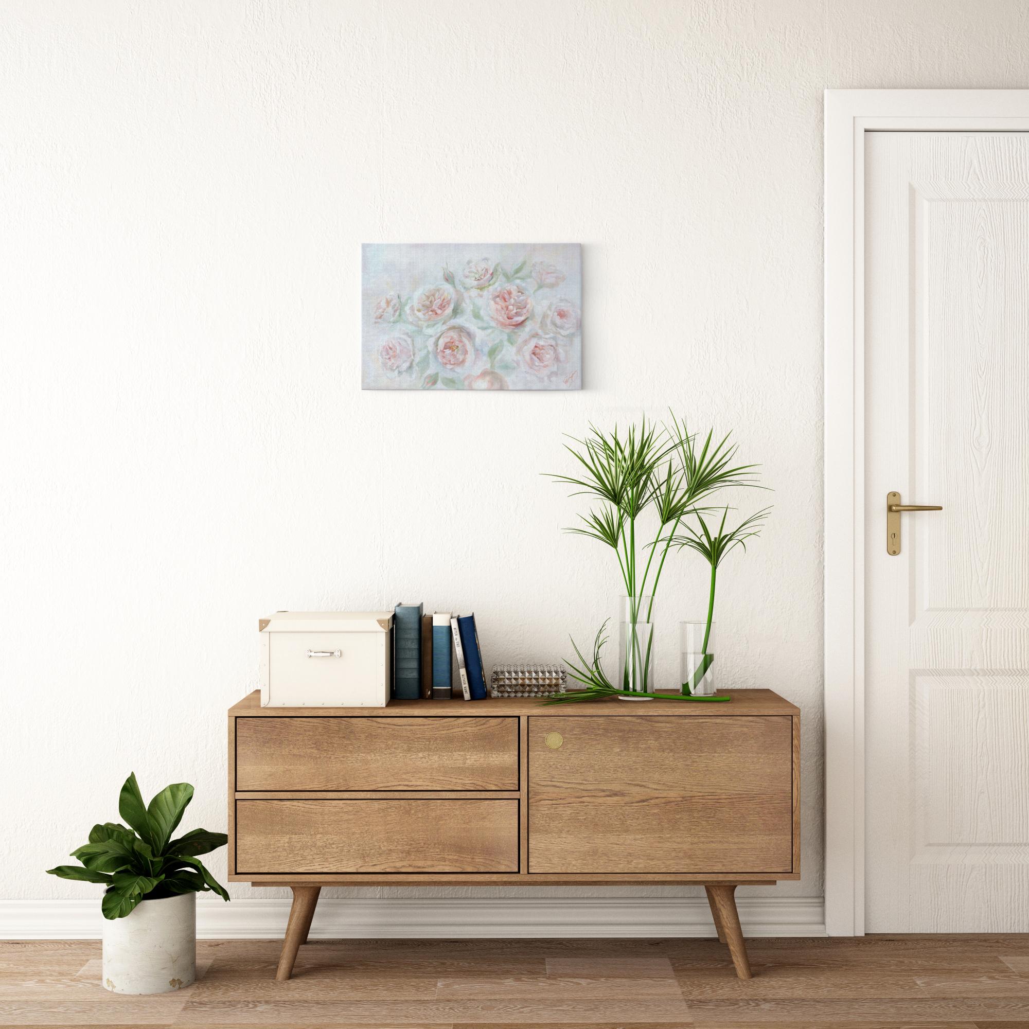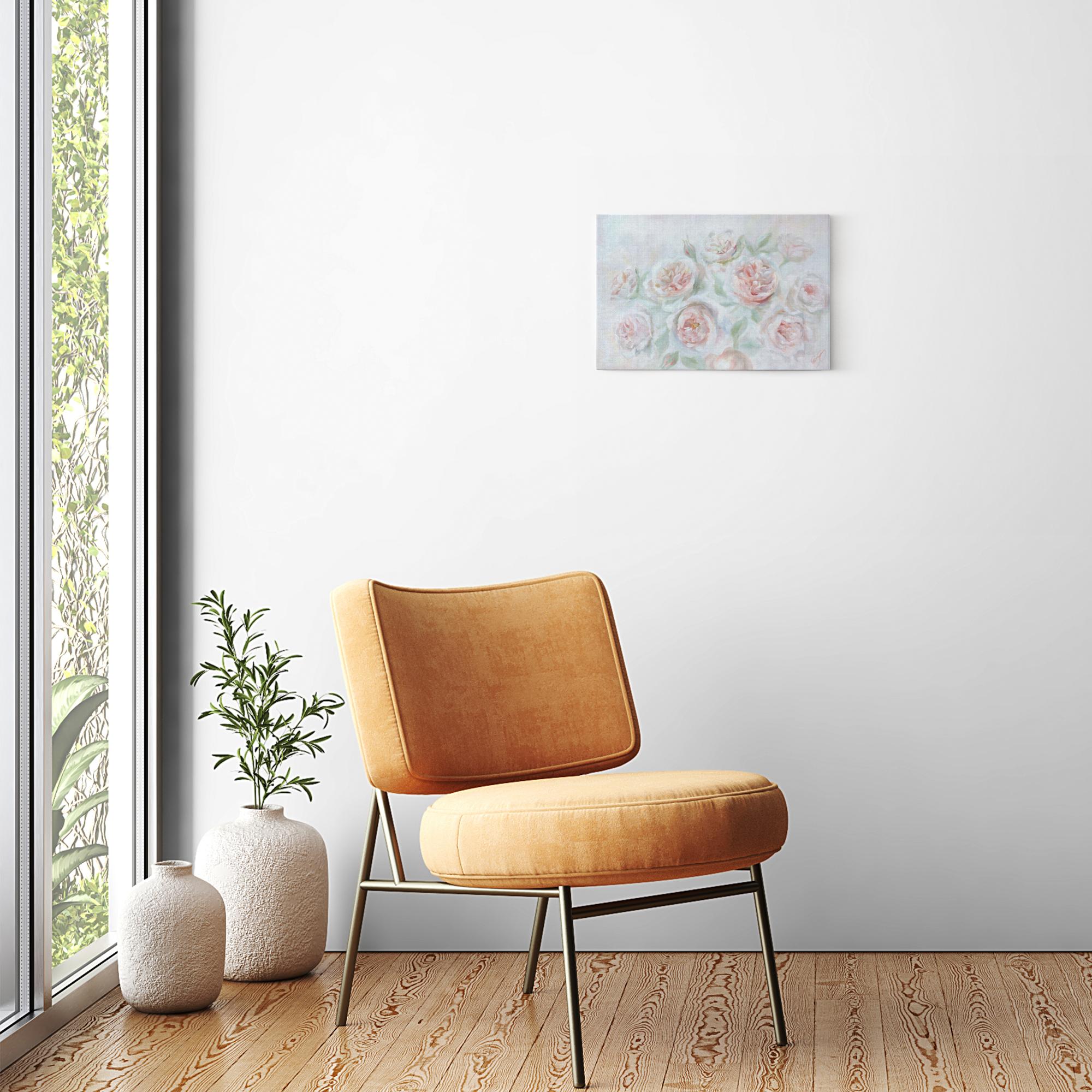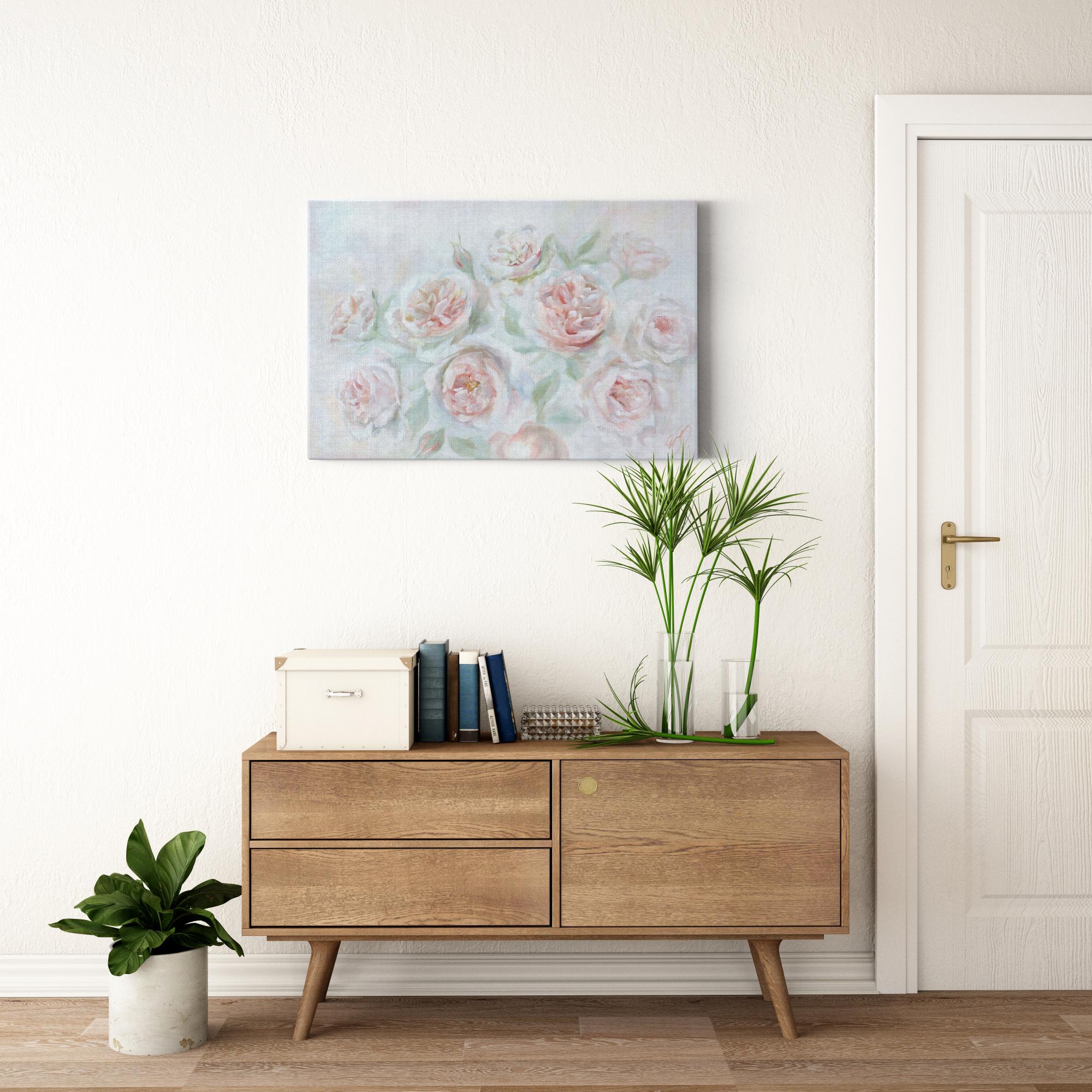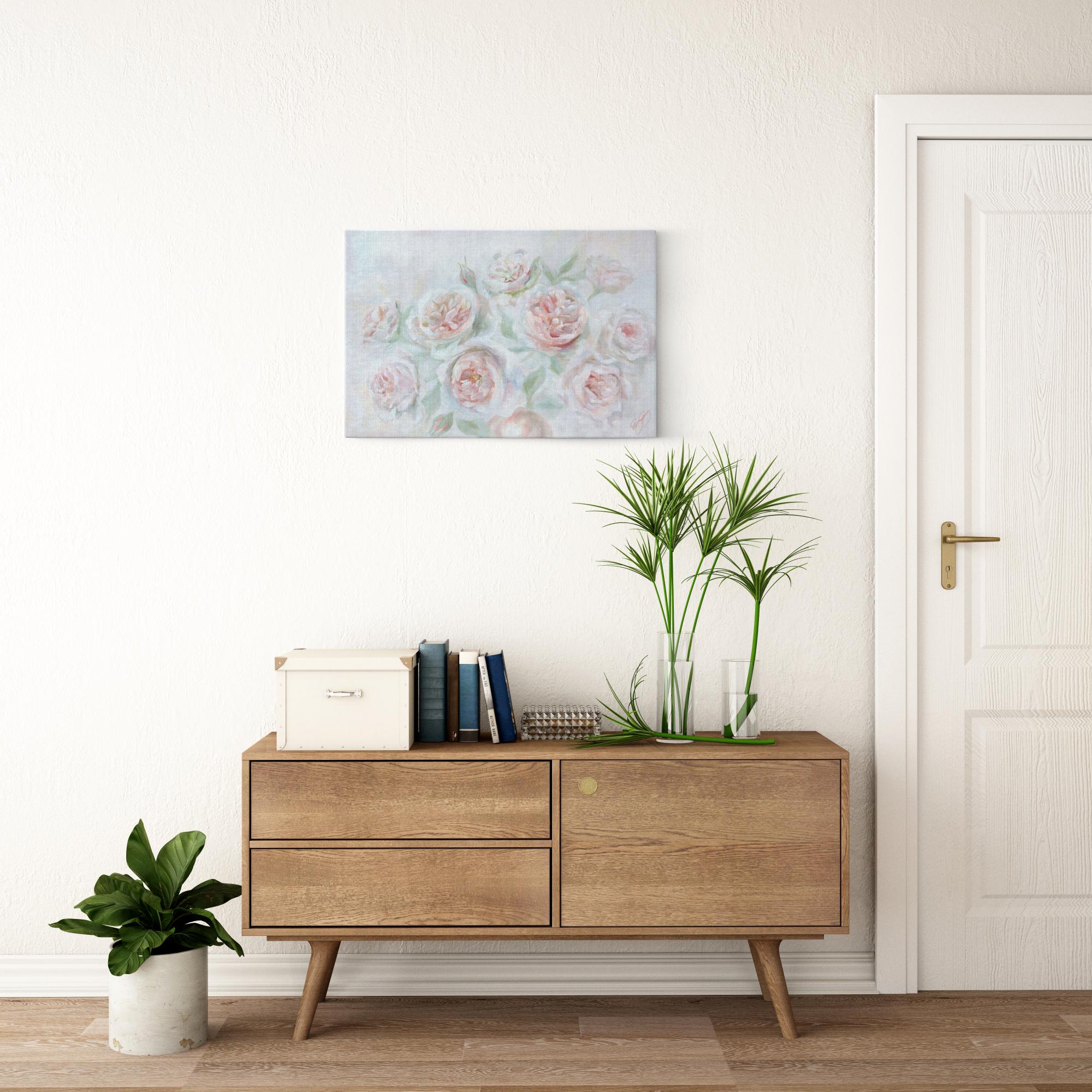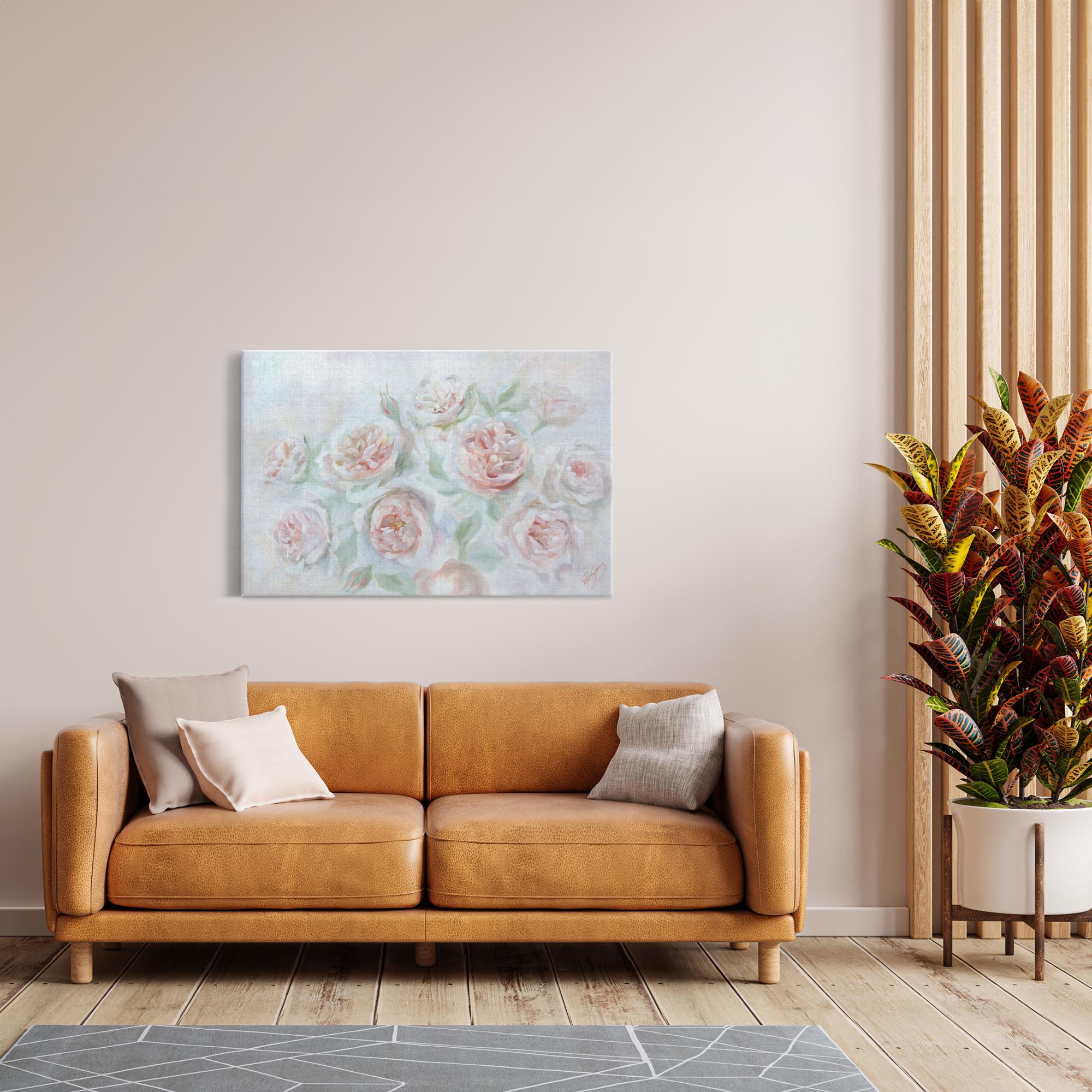 One of my all-time favorite paintings is reproduced as a fine art print on a canvas wrap. My painting shows a bouquet white garden roses in a soft, ethereal style. The image is printed with archival inks on canvas, then stretched around a wooden frame and finished for easy hanging. The 1.25" edges of the wrap are white.