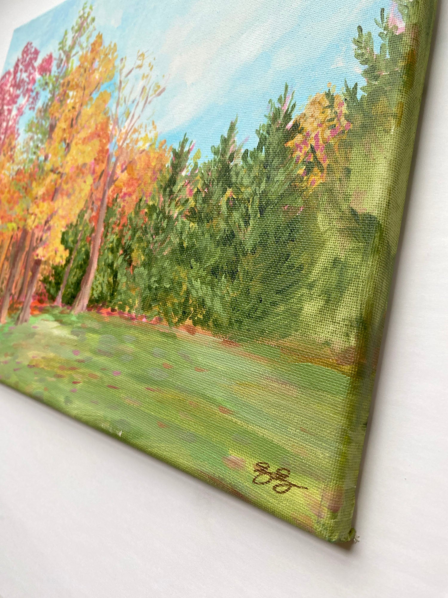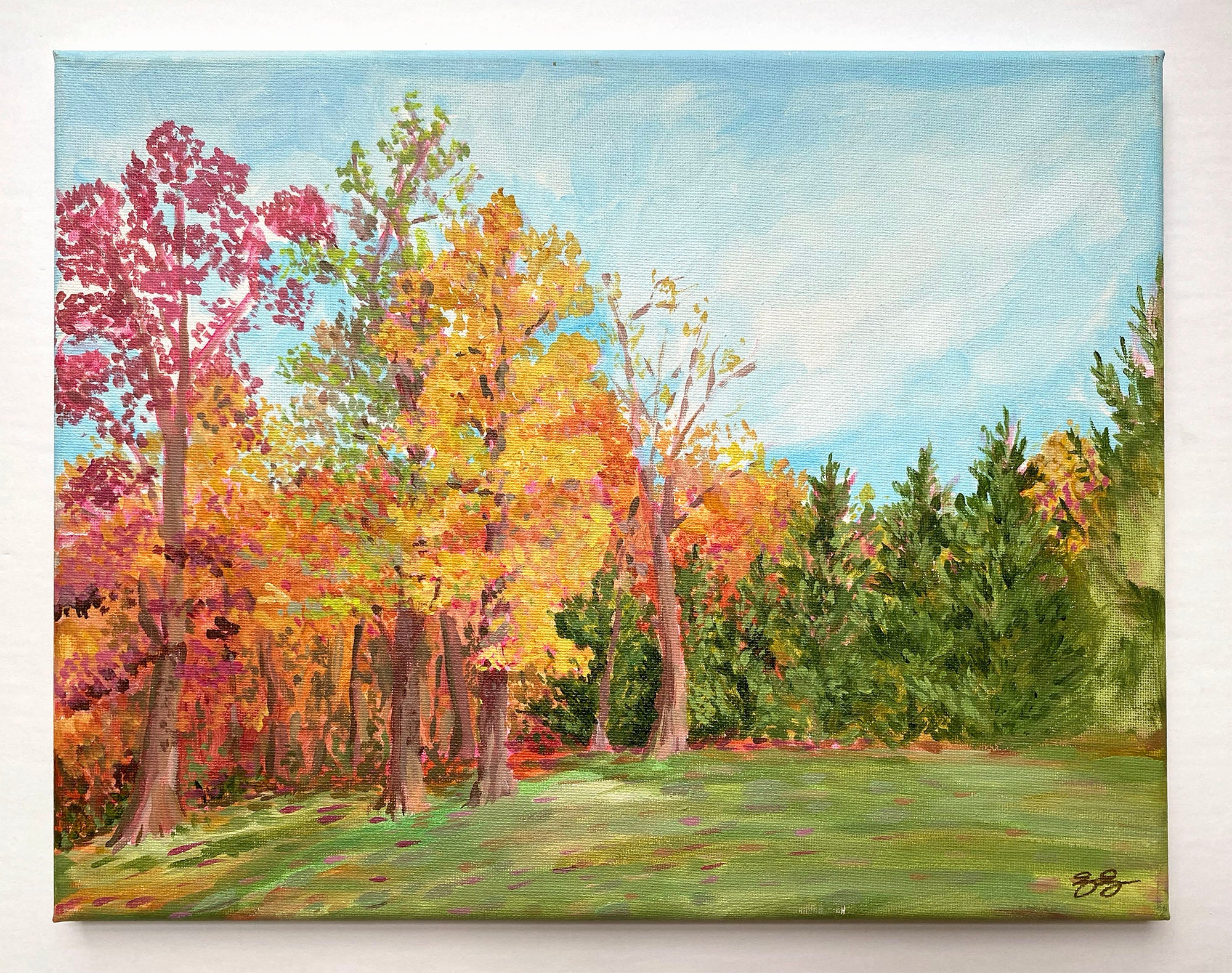 This original acrylic painting on canvas was painted on-scene, en plain air near my home in Maryland. The canvas is 11 x 14 x 0.75 inches. The edges of the canvas are painted.