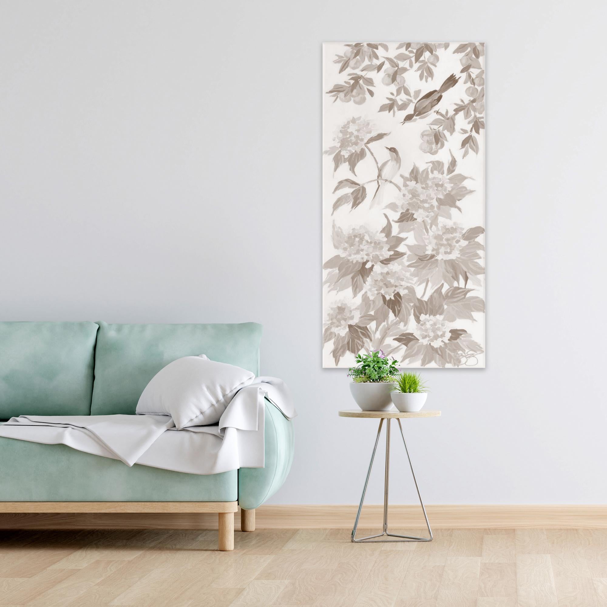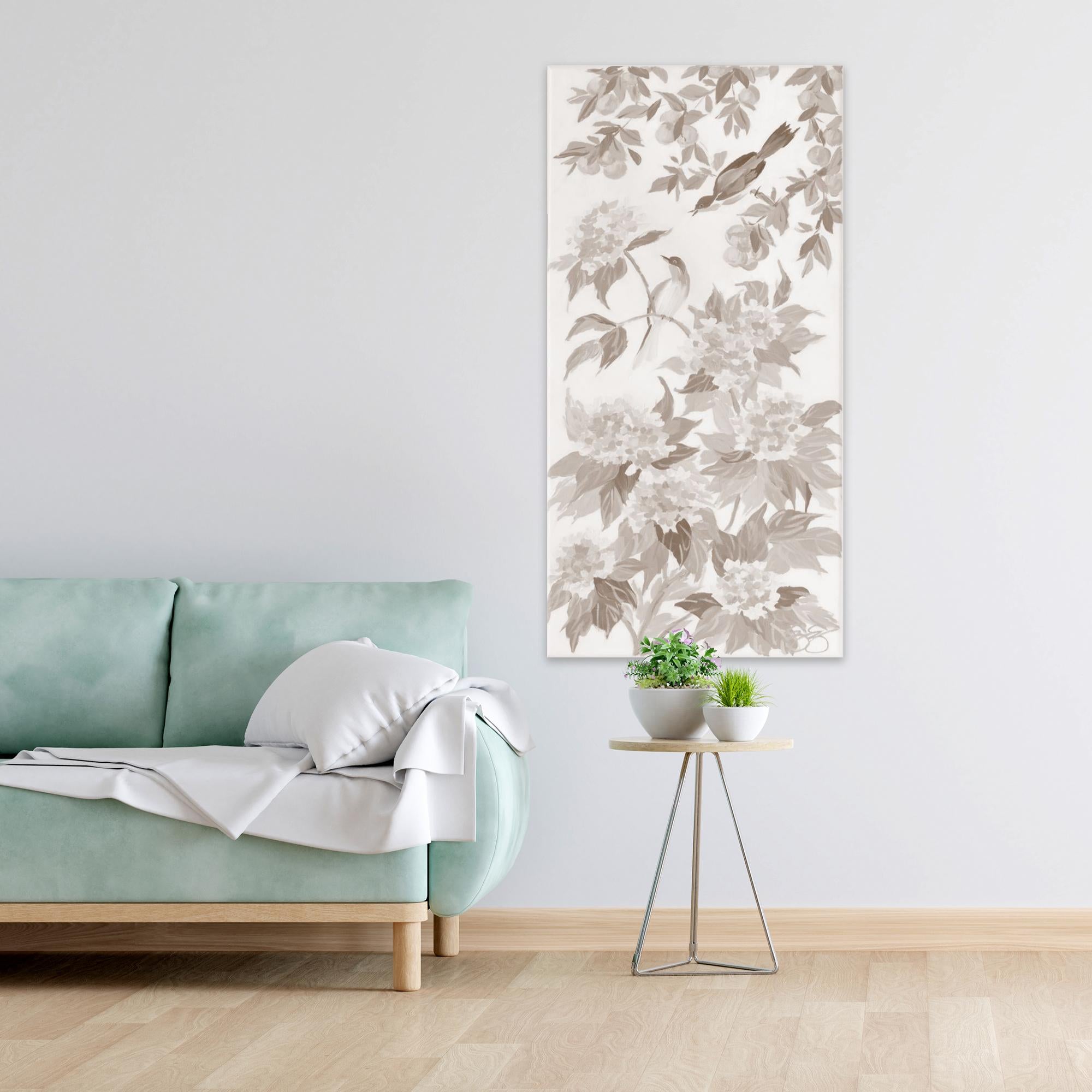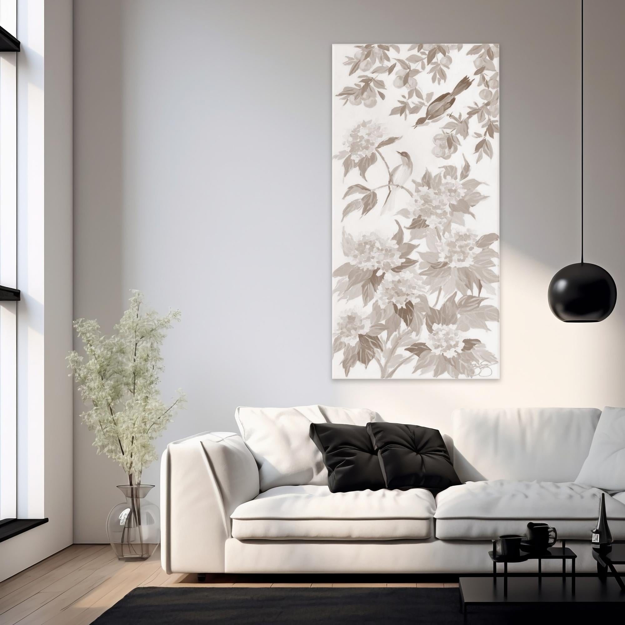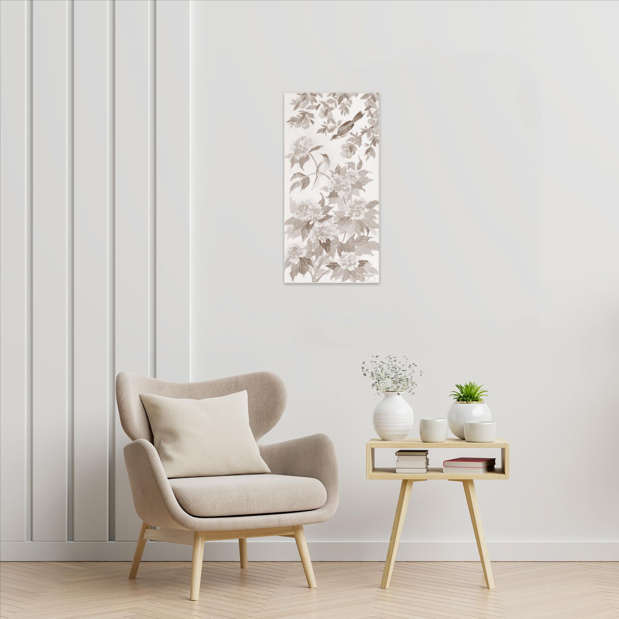 My original painting is reproduced as a print with art-quality paper and ink. My chinoiserie art is inspired by my own mixed Chinese heritage; I love to combine western and eastern painting techniques in a new way. This print of my painting of two birds sitting among hydrangeas and oranges will ship rolled in a tube and will need to be gently flattened and framed.